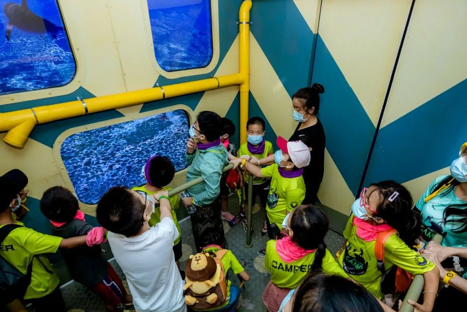 走进横琴国家地理探险家中心,通过看、听、说、触碰的体感互动方式,从远古到深海,从自然故事到动物演变,深层次的向孩子们展现大自然的神奇与神秘,在这个过程中,小营员们身临其境的体会学习,不仅拓宽眼界,更增长了知识。